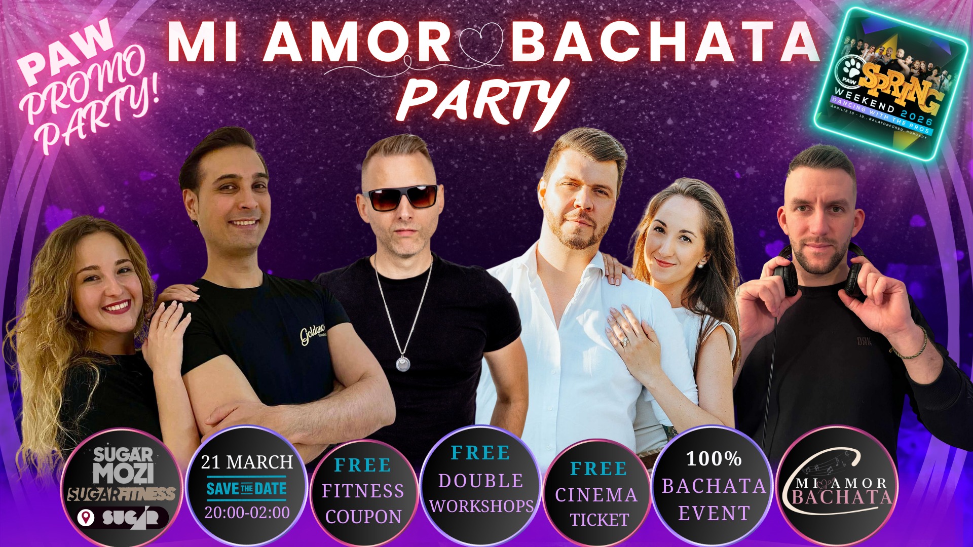 Sziasztok Táncosszívűek! Jön a tavasz első nagy bachata‑robbanása — újra itt a Mi Amor Bachata Party, tele ajándékokkal és a különleges MI AMOR vibe‑bal!