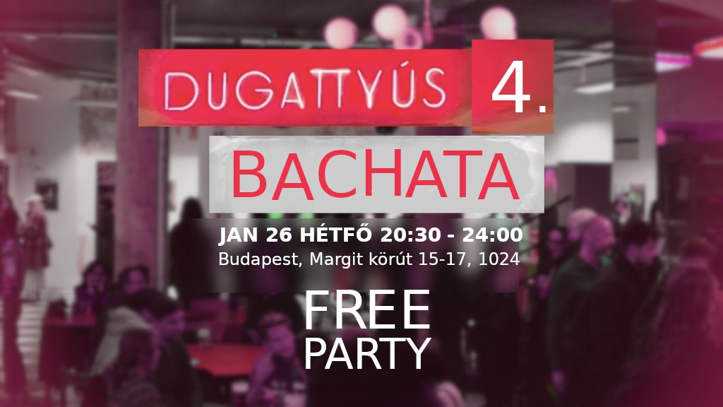BOMBA HANGULATÚ 100% BACHATA BULI A BELVÁROSBAN Event time: 20:00-01:00 Dress: elegant & cool Részletes információk: https://www.facebook.com/events/26913796511542233/