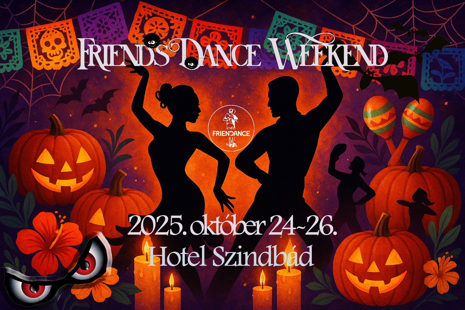 2025. október 24. Péntek 22:00 – 02:00 – „Tökjó” Buli (Kizomba, UrbanKiz, Salsa, Bachata) DRESS CODE: FRIEN(A)DDAMS FAMILY…. a legjobbak díjat érdemelnek! 2025. október 25. Szombat: 22:00 – 02:00 – Halloween Buli (Kizomba, Salsa, Bachata) DRESS CODE: HALLOWEEN….avagy minden, ami félelmetes, boszorkányos vagy akár „szellemes” Részletes információk: https://www.facebook.com/events/1761239547809329/