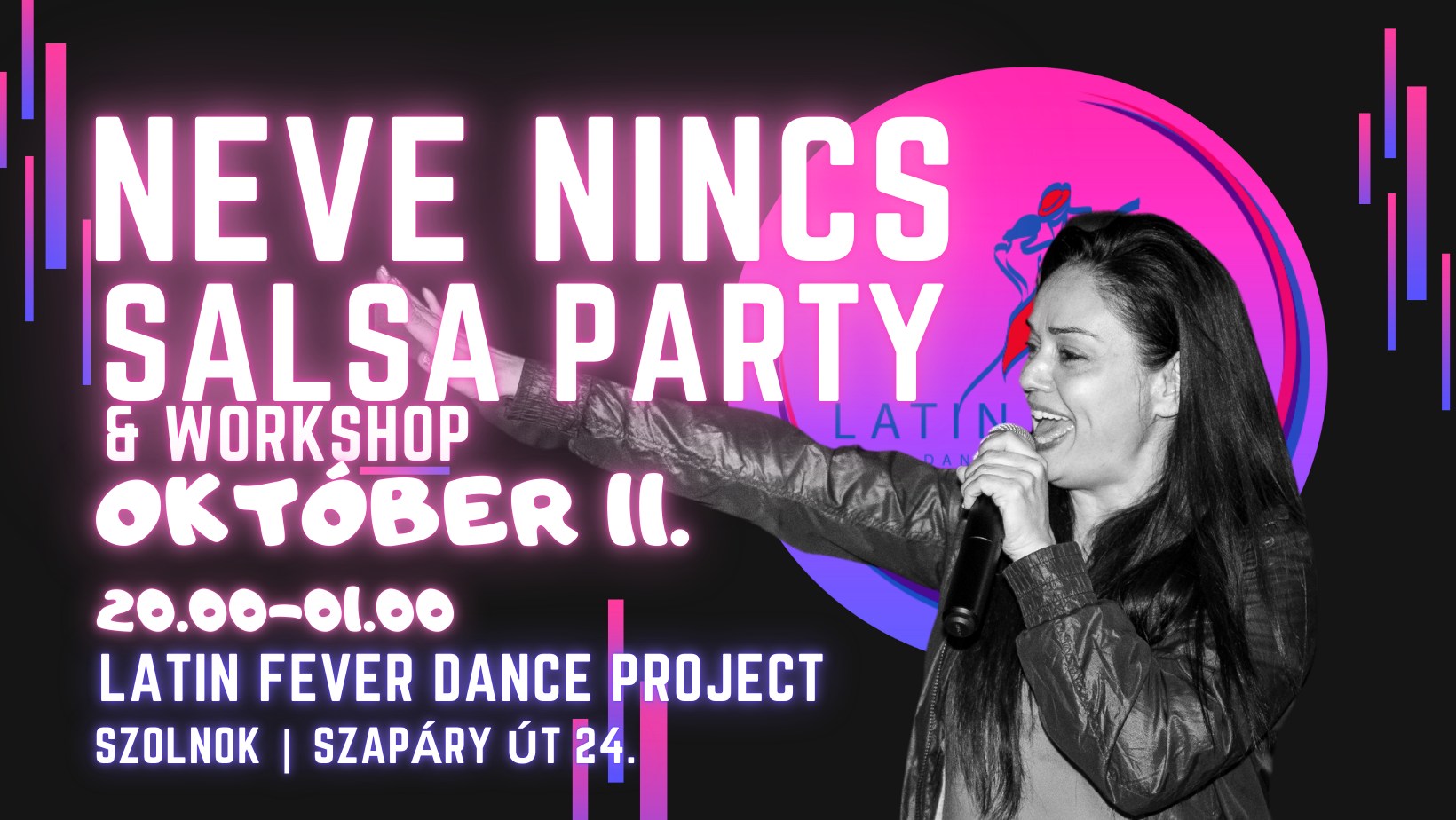 Csatlakozz hozzánk egy fergeteges salsa–bachata táncestére Szolnokon! Időpont: 2025. október 11., szombat, 20:00–01:00 Zene: kubai salsa, son, cha-cha, bachata, kizomba Részletes információk: https://www.facebook.com/events/677710802029585