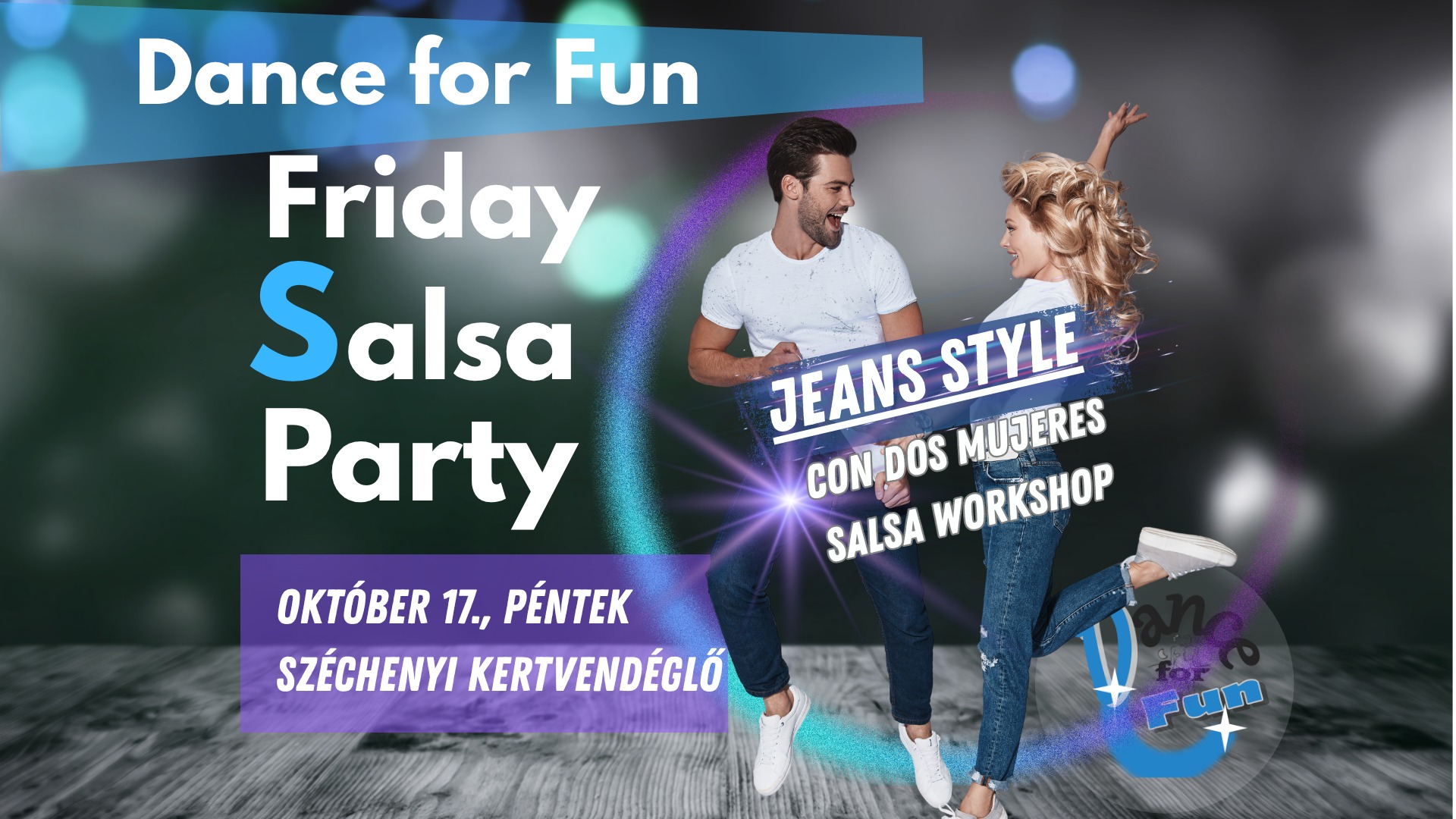 OKTÓBER 17-ÉN, PÉNTEKEN 20:00-00:30-IGtartsatok Velünk JEANS STYLE Salsa Partinkon,ahol a farmeré és a táncé és a táncosoké főszerep! 80% SALSA – 20% Bachata, Cha – cha – cha, West Coast Swing Baráti, vidám hangulat, remek társaság várható! Program20:00-tól, kapunyitás20:50-00:30-ig – PARTY TIME! Részletes információk: https://www.facebook.com/events/669831045749793/