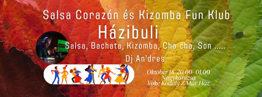 Házibuli !Itt az Ősz és még nem is buliztunk ! Október 18.-án este 20:00 – 01:00 -ig bulizunk! Zenék: Salsa,Son, Cha cha, Bachata, Kizomba.. Részletes információk: https://www.facebook.com/events/1955005571956220