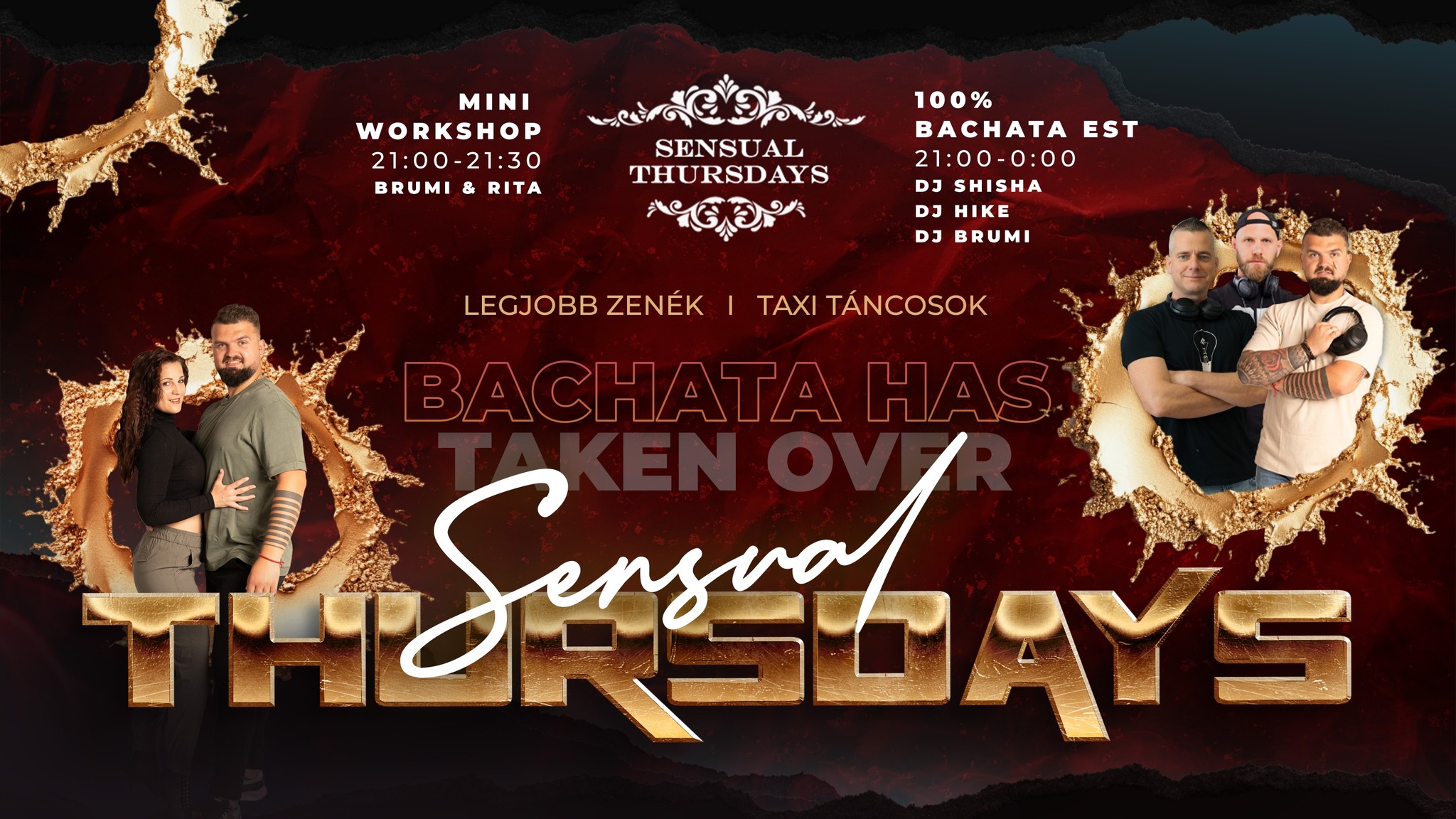 Bachaterak és Bachaterok!!! Minden héten csütörtökön Sensual Thursdays, Budapest egyik legjobb és legismertebb bachata estje! Megújult rendszerrel várunk mindenkit! 21.00-0.00 *** 100% Bachata Est *** Részletes információk: https://www.facebook.com/events/777508908537606/777508921870938/