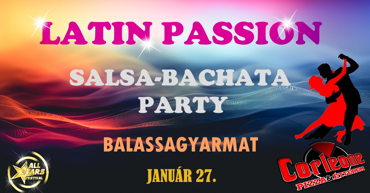LATIN PASSION PARTY – BALASSAGYARMATON – Bachata & Salsa Buli Kifulladásig – 21:45-01:00ig 100% LATIN PARTY Részletes információk: https://www.facebook.com/events/25852736614313572