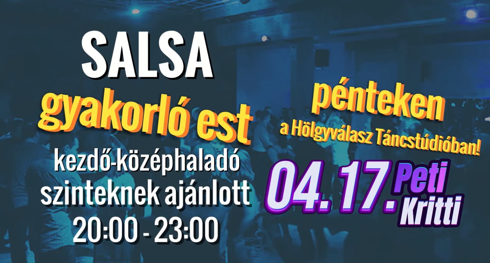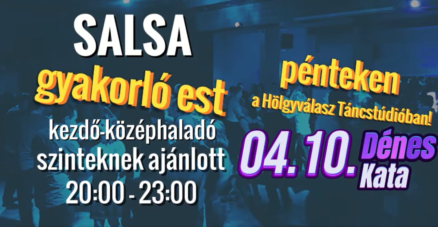 20:00 – 23:00 Salsa gyakorló est 2026. március 06. @ 20:00 – 23:00 CET Salsa gyakorló est Részletes információk: https://www.facebook.com/events/2581619895567730 3000Ft